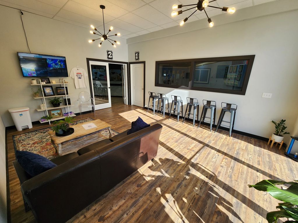 LOBBY - Our lobby is a family friendly place where parents can sit and relax while their child dances. The television in the lobby provides class information for the day, as well as, upcoming news and events.